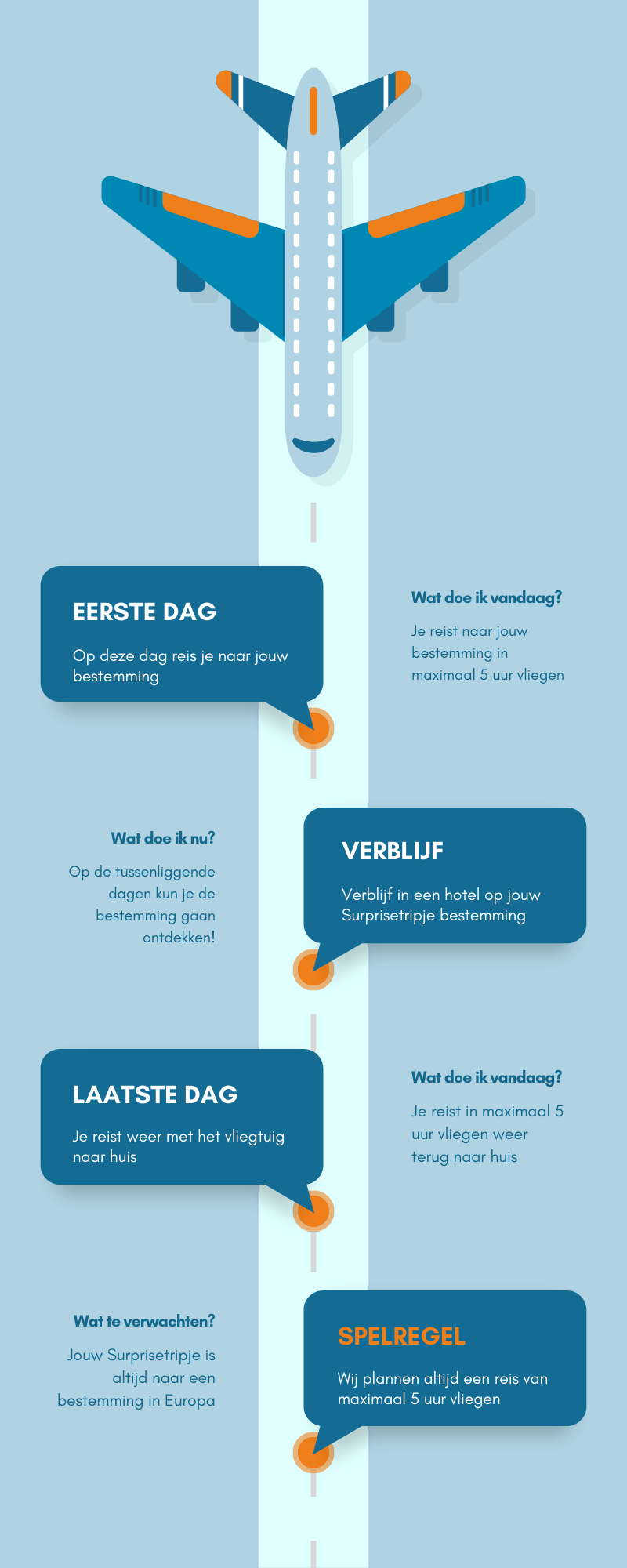 24 uur voor vertrek is jouw bestemming bekend en kun je de reisdocumenten downloaden.